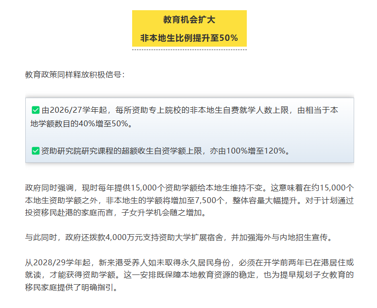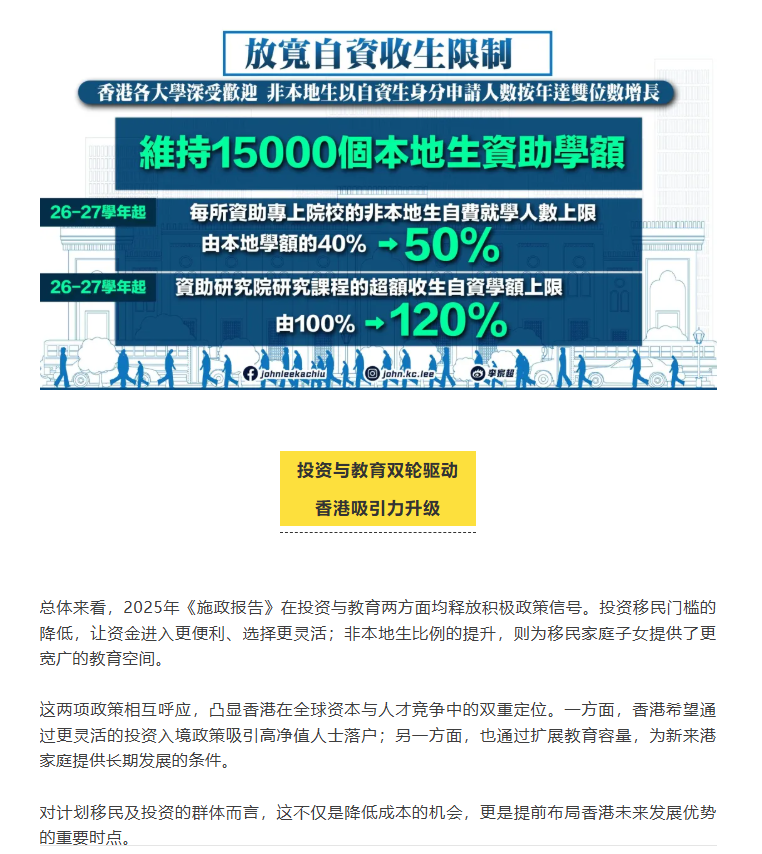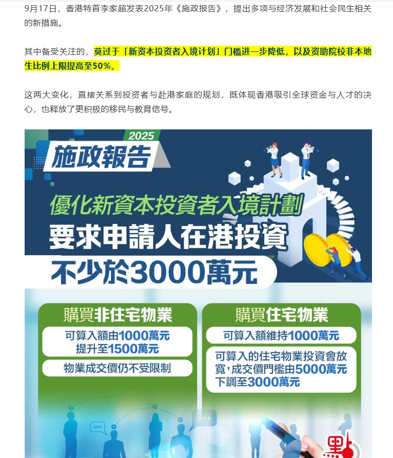 香港施政报告重磅发布:投资移民门槛放宽,教育机会大幅扩容