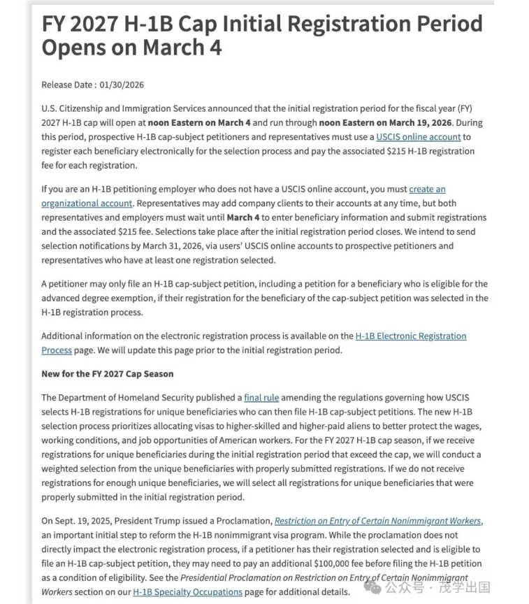 2026年H-1B抽签新规落地:3月4日开放注册,流程细则公布