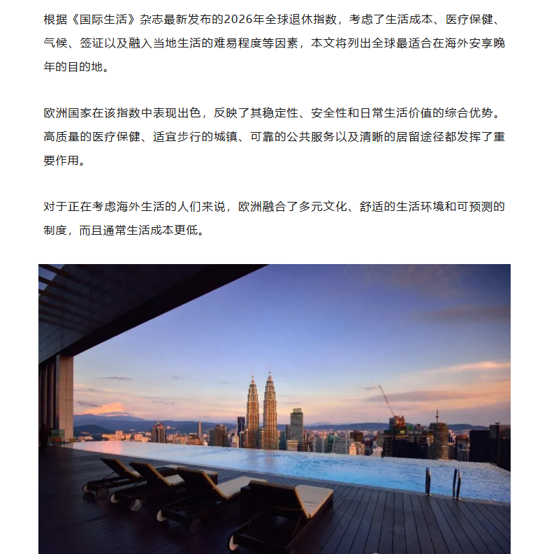 2026全球最佳养老国家出炉,排名第一的竟是这个国家
