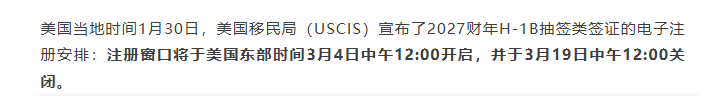 2026年H-1B抽签新规落地:3月4日开放注册,流程细则公布